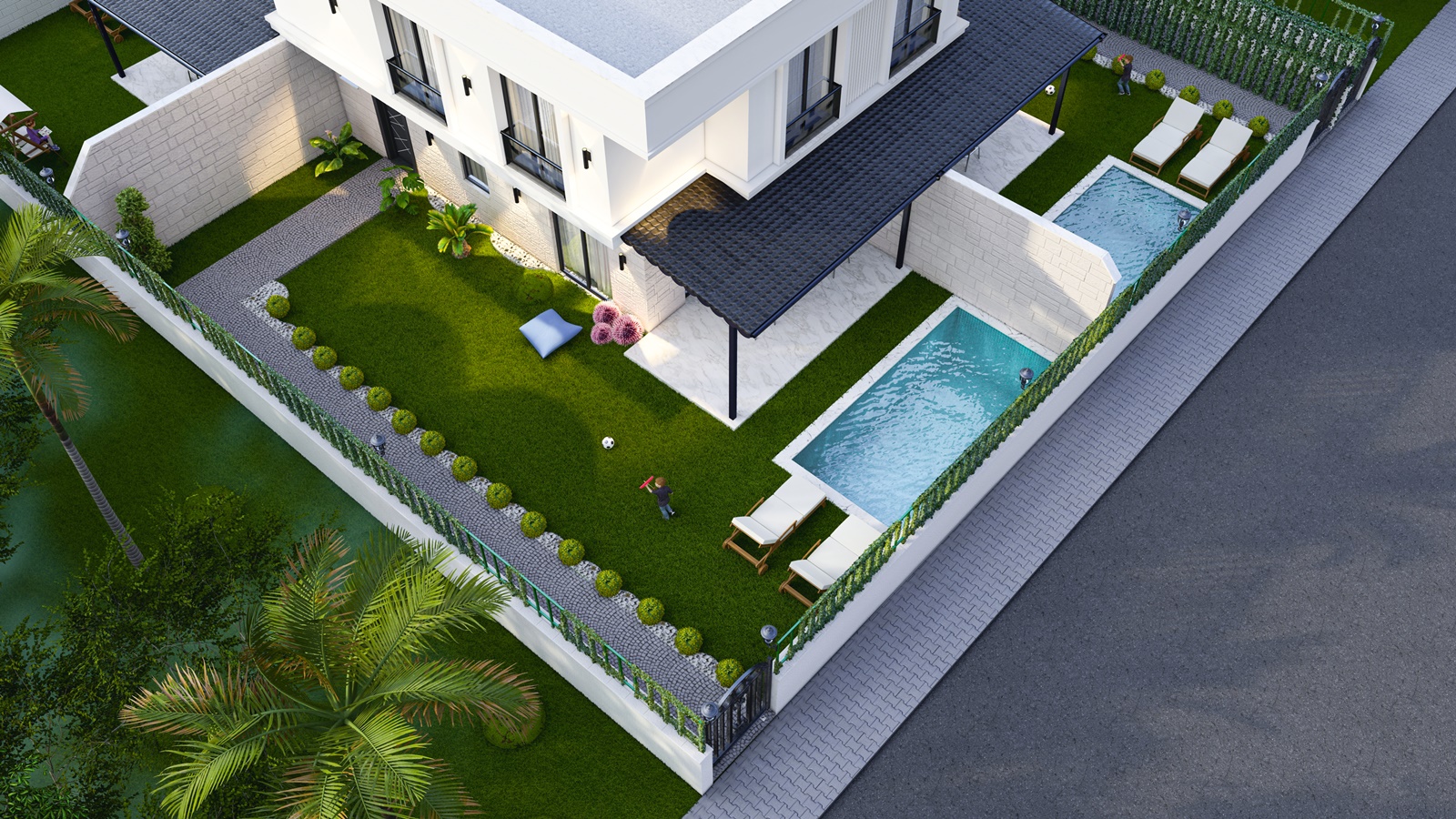 132 m2 bahçe ve size özel yüzme havuzu